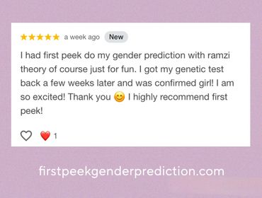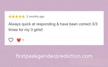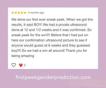 We here at First Peek Gender Prediction want to provide you with the most beautiful experience. If you would like to purchase a detailed prediction from us please send your ultrasound to